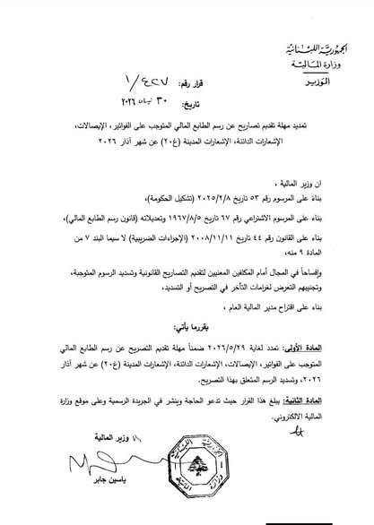 الرئيسية/إعلانات رسمية/تمديد مهل بعض التصاريح الضريبية إعلانات رسميةشركاتلبنان المؤسساتوزارات وإدارات تمديد مهل بعض التصاريح الضريبية منذ 7 دقائق0 6 أقل من دقيقة معجب بهذه:إعجاب تحميل... الوسومتصريح الضريبة لبنان وزارة المالية منذ 7 دقائق0 6 أقل من دقيقة فيسبوك X واتساب مشاركة عبر البريد طباعة